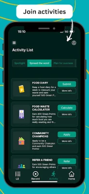 Earn Green Points through engaging activities focused on key food waste themes. Participate in submissions or weekly activities to climb the leaderboard and win vouchers.