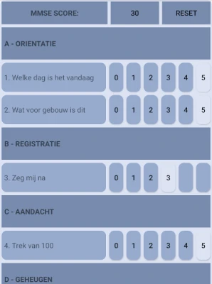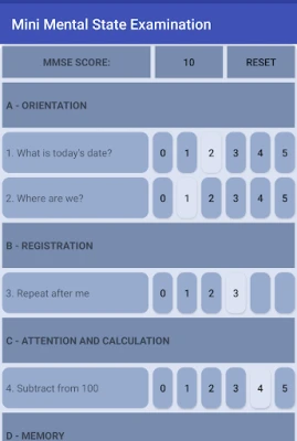 This app helps you to do an evaluation of the mental state of your patient by determining the MMSE score on which you can base your next course of action with your patient.
