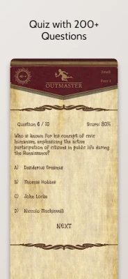 7. Quiz with 200+ Questions: Test your understanding and knowledge of philosophy with our extensive quiz bank featuring over 200 thought-provoking questions. Challenge yourself across various topics and philosophical domains, reinforcing your learning and deepening your comprehension of philosophical principles and ideas.